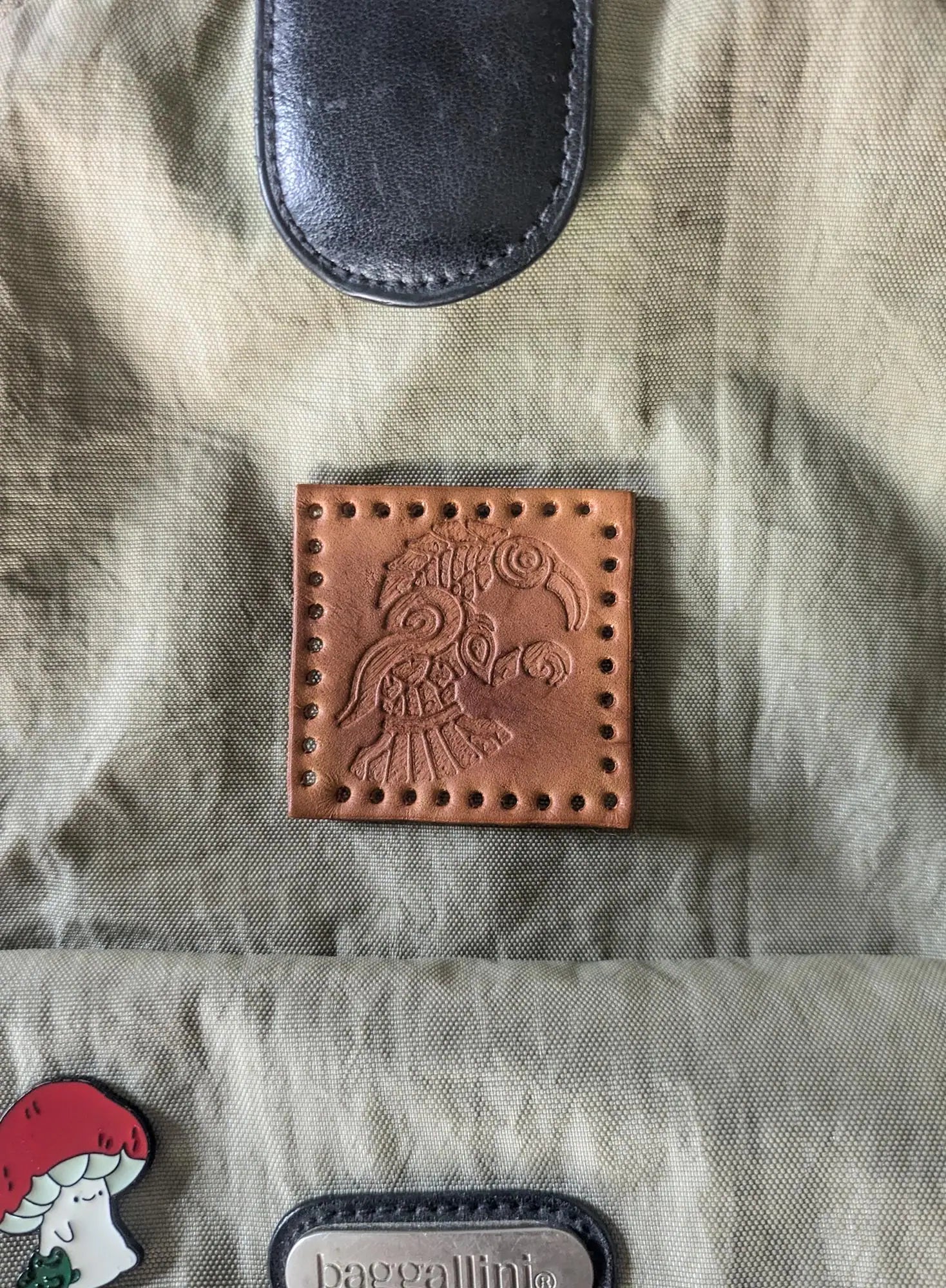 These 100% real leather patches are complete with sewing holes pre-punched for an easy fix! Each of these sew-on patches is stamped with a piece of Viking or Pagan iconography; from Germanic ravens to the World Tree!