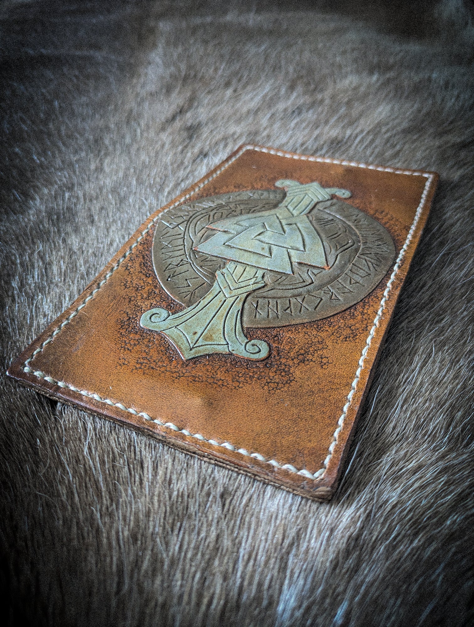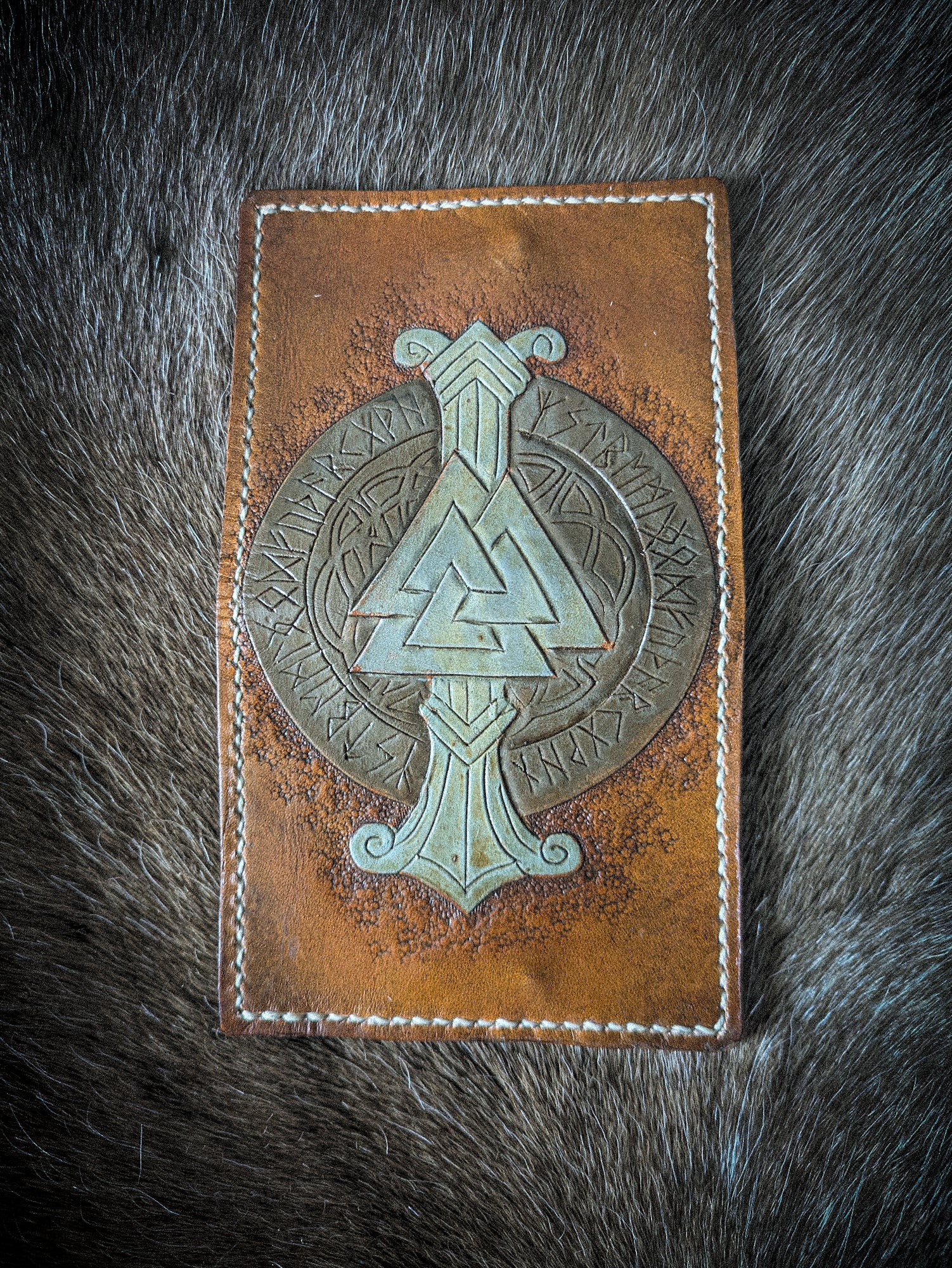 This particular wallet features the iconic Valknut; a symbol of the Norse god, Odin.